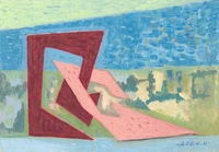 Αφηρημένη σύνθεση στην οποία κυριαρχούν οι διαγώνιες και οι οριζόντιες γραμμές, οι οποίες ορίζουν διαιρούν τη ζωγραφική επιφάνεια στη μέση, δημιουργώντας αυτόματα δύο.